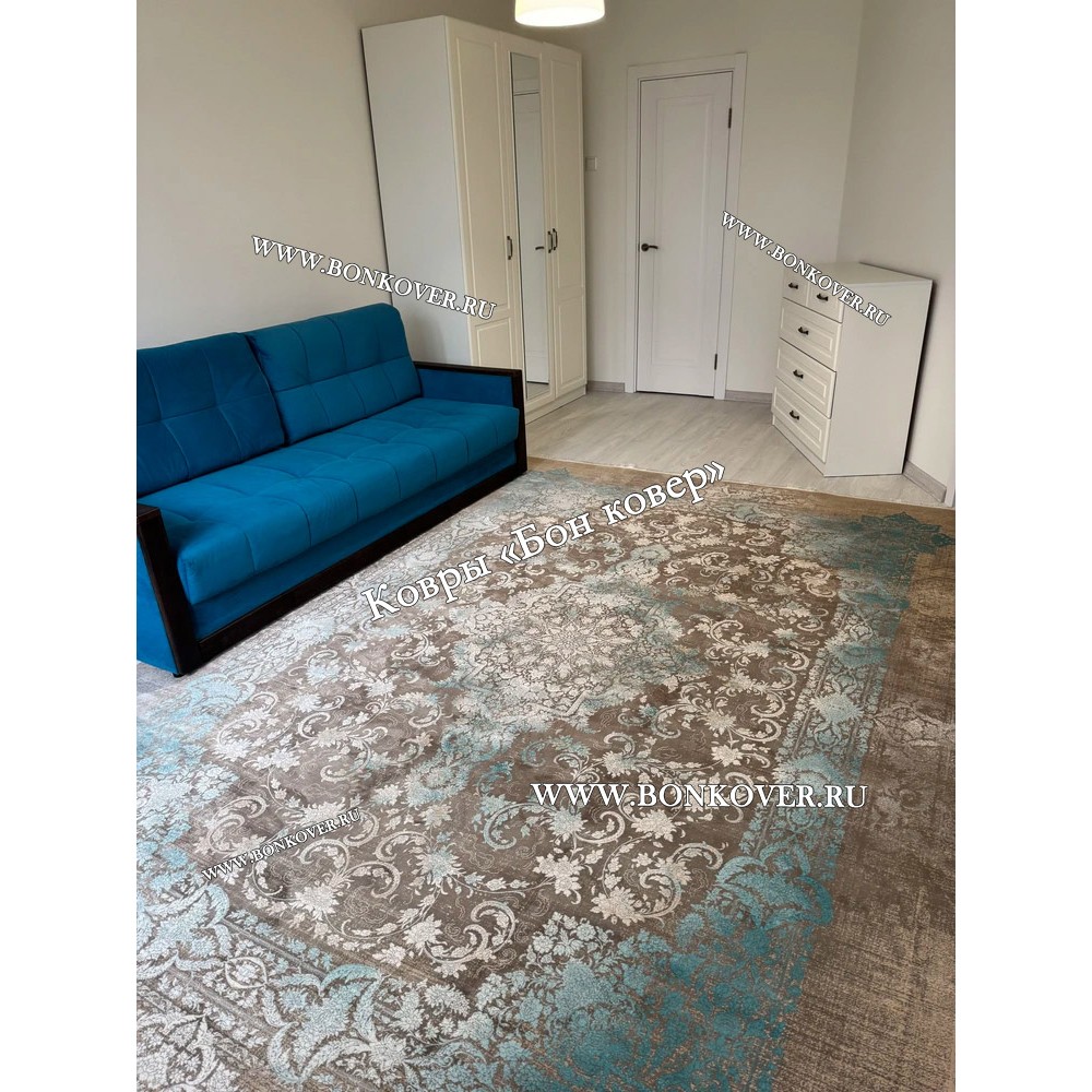 Долго искали смотрели на разных сайтах , в итоге ваш ковер приглянулся больше всего . Доставили в рулоне на следующий день , оплатили при получении . Идеальный вариант , цвет темно синий с переливом - рисунок очень выйгрышно смотрится !