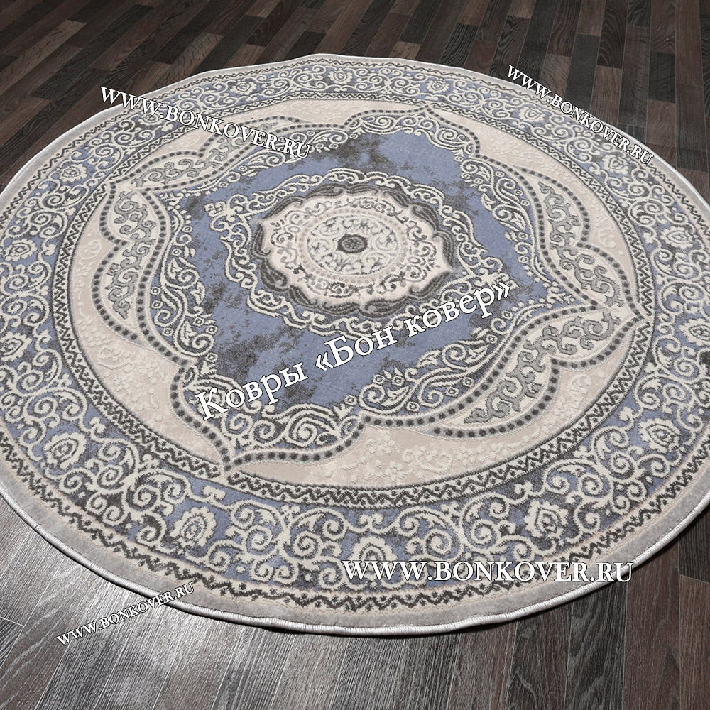 Изящный Круглый ковер в гостиную дизайн 01 Синий наполняет интерьер вашего дома теплом и уютом, гармонично сочетает в себе изящество и стиль. Он изготовлен из современных материалов, комфортный и долговечный.
