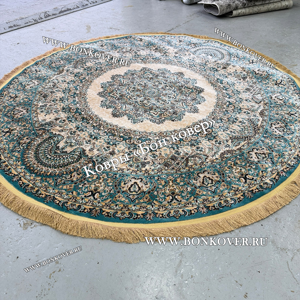 Восточный Ковер Для Гостиной Медальон Дизайн 28747 круг станет привлекательным дополнением интерьера, оформленного в современном или классическом стиле. Мягкое, но прочное, ковровое изделие обеспечивает тепло- и шумоизоляцию, отличается длительным сроком эксплуатации, надежностью, экологичностью и высокой износостойкостью, является отличной защитой от повышенной влажности в помещении и утеплителем для холодного пола. Благодаря качеству материалов, ковер не деформируется, сохраняет форму под тяжестью предметов мебели. За его поверхностью легко ухаживать.